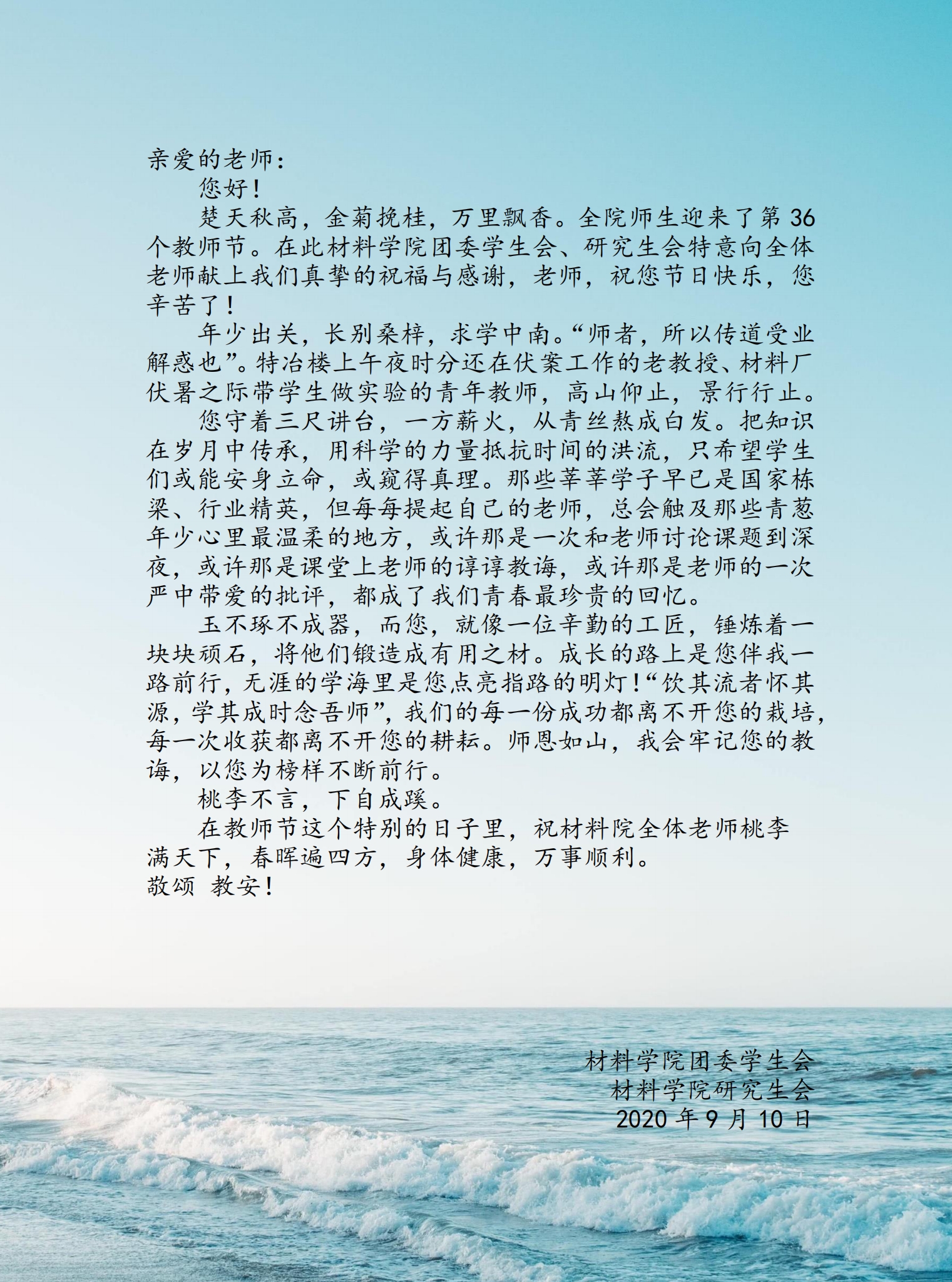 教师节材料学子致老师们的一封信