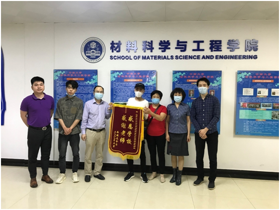 5月11日下午,朱晓龙同学在家人的陪同下送来一面写有“感恩公司感谢老师”的锦旗向全校师生表达感激之情。