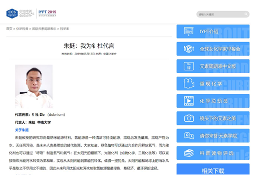 球王会特聘教授朱挺入选“中国青年化学家元素周期表”代言活动