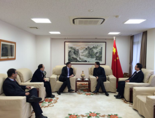 10日下午,梁叔全经理一行拜会了中国驻新潟总领事馆总领事孙大刚先生,就此次访问工作做了简要汇报。孙总领事就如何进一步加强中国中西部高校与日本东北部高校合作交流进行了探讨,特别是如何结合国内高校“双一流”建设,开展好相关工作提出了宝贵建议。