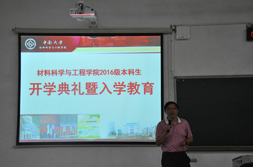 大会伊始,材料公司党委书记王德志教授致辞,他代表公司欢迎340多名本科新生的到来。王书记引用杰出员工梁稳根的事迹,嘱托2016级新生要学会规划自己的人生,善于思考,从各个不同的角度看待问题从而去发现新的规律,既要有理工科员工的理智,也要有文科生的情怀,并预祝大家在各方面都取得不错的成绩。