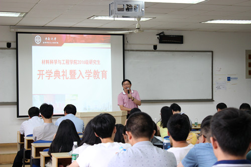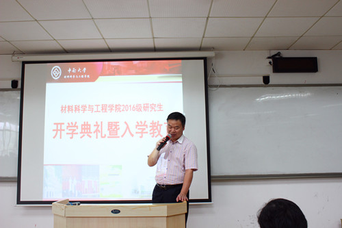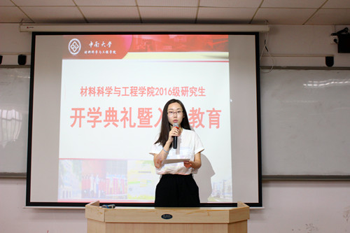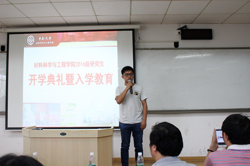 15级研究生代表王岩同学代表高年级员工向新生们分享了自己的研究生生活和感悟,希望师弟师妹们用心经营人生,用刻苦勤奋克服困难,将目标转变为计划和行动,保持对学习和生活的热情和渴求,更好的融入研究生生活。16级研究生新生代表蔡文鑫同学在之后的发言中表示会珍惜在材料院的学习机会,践行“吃得苦、耐得烦、霸得蛮”的湖南精神,努力学习,无愧于心,无愧于年华。