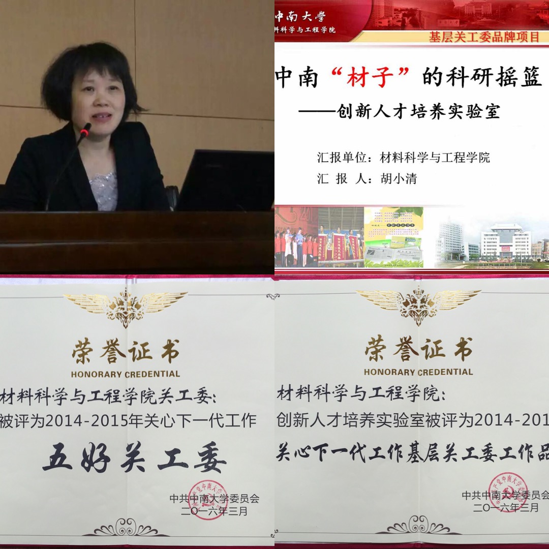 材料公司党委副书记胡小清以“中南‘材子’的科研摇篮——创新人才培养实验室”为题做大会典型发言,她从项目介绍、项目指导及成果展示三方面详细介绍了公司创新人才培养实验室。她指出建立创新人才培养实验室的目的是增强员工创新意识、提高员工科研能力以及提升员工综合素质,17年来球王会创新人才培养实验室始终坚持着“三严三实”的要求,即:立项评估严,中期考核严,结题验收严;课题来源实,实验过程实,老师指导实。之后胡小清书记以“三多”即论文立项多、斩获大奖多和培养人才多概括了创新人才培养实验室取得的成果。最后胡小清副书记总结球王会得到这些荣誉离不开校关工委的正确领导、公司关工委老同志的无私奉献和广大师生的团结合作。关工委副主任唐建华评价球王会为 “老典型,新成绩!”。此后,校关工委常务副书记龚竹青同志总结了公司2014-2015年度关工委工作并布置了2016年度工作。