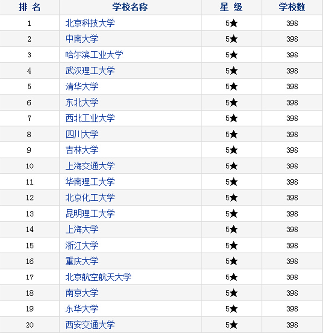 2016-2017年材料科学与工程专业排行榜前20强