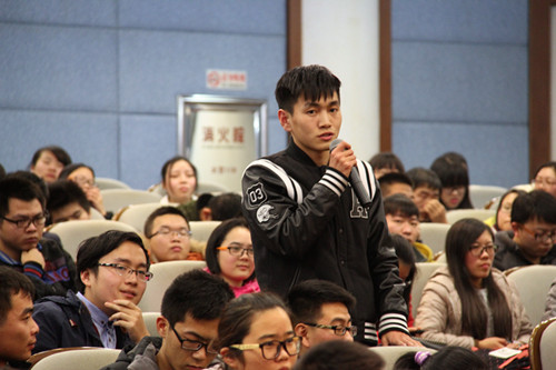 周世光教授首先介绍中国抗美援朝我军损失惨重的教训,强调了国防现代化的重要性。他颂扬了钱学森、邓稼先等一批热爱祖国、无私奉献的“两弹一星”元勋,讲述了为我国国防事业做出巨大贡献的军人、科学家的英雄事迹,并结合自身科研经历和学术心得,强调求真务实、知行合一的重要性,告诫大家,学术造假成就不了中国国防,严谨务实,脚踏实地,才能铸造“真材实料”之产品、技术及今日强大的国防力量。先辈们的爱国情怀和民族担当深深感染了在场每一位听众,当他讲到建国初期科研工作者克服重重困难,为国家和民族复兴贡献青春、健康、智慧和生命时,很多同学几度哽咽,不禁潸然泪下。