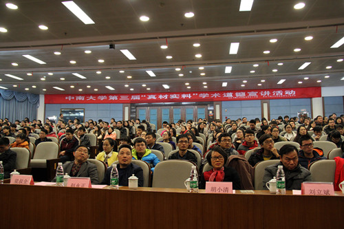 2015年12月25日下午2:00,球王会体育官网第三届“真材实料” 学术道德宣讲会在校本部国际报告厅隆重举行,著名军事科技专家、国防科技大学正军职周世光教授作客“真材实料”学术道德宣讲会,为公司研究生作 “两弹一星,永放光芒”的主题报告。本届“真材实料”宣讲活动由球王会体育官网党委研究生工作部主办,球王会承办。球王会体育官网研究生工作部赵永正部长,球王会经理梁叔全教授、党委书记王德志教授、副书记胡小清老师、副经理刘立斌教授,以及材料院、商公司、信息院等多个公司的研究生及本科生代表近400人参加宣讲会。