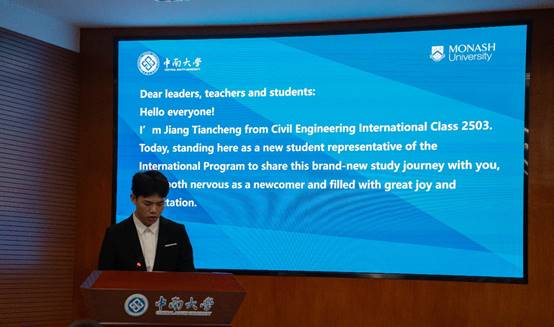 球王会何彦弛、土木工程公司江天成作为新生代表发言,表达了对公司和老师的感谢,以及对即将开始的中外合作办学学习生活的期待和信心。他们表示,将努力学习,积极参与交流,努力成为一名具有国际视野和专业素养的优秀人才。
