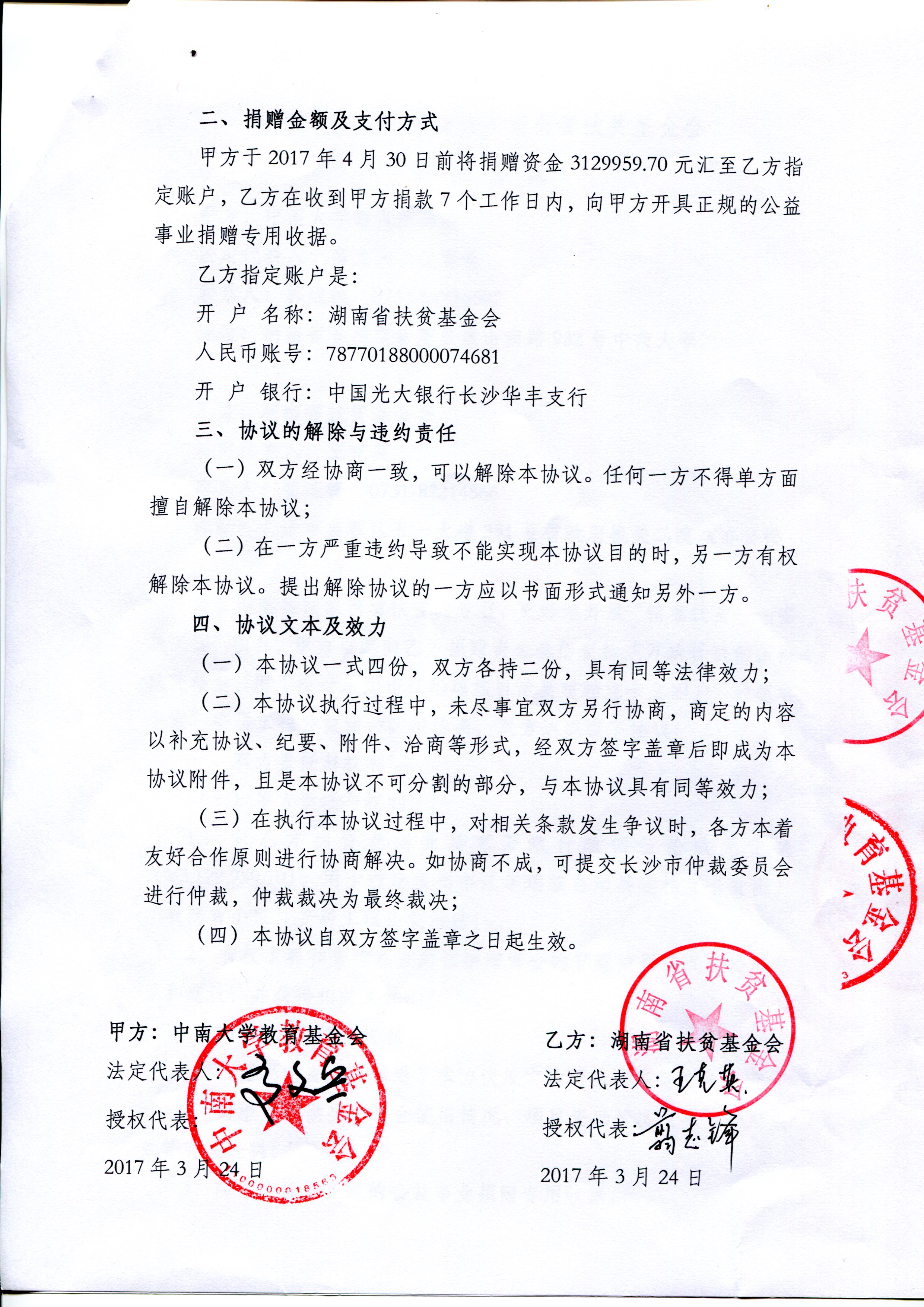 2、球王会体育官网教育基金会向湖南省扶贫基金会捐赠协议