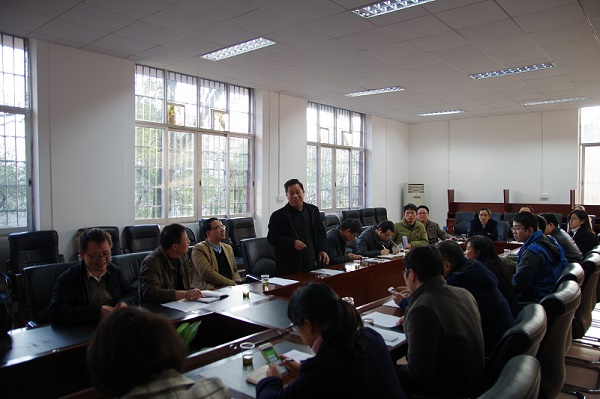 球王会2016年考风考纪主题教育暨期末工作布置会于12月22日下午在化学楼210顺利召开,材料公司党委副书记胡小清,副经理李周、陈志永、冯艳,公司全体班导师以及学工办全体老师参加了本此次会议。会议由胡小清副书记主持。