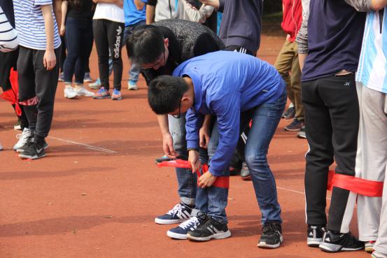 绿草如茵,春光正好。上午830,三个班级的同学在南校区田径场集合。初次见面,同学之间较为陌生。为活跃气氛,三个班级随机分组,一起进行“贴烧饼”游戏。互相追逐,欢声笑语,同学们很快打成一片。