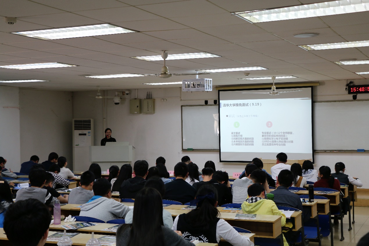 晚19:00,“出国、就业场”如期举行,拿到深信服offer的宴江为大家讲述自己的求职经验,以自身经历谈到“好开头不等于好结尾”、“找工作不能太局限”,同学们都大开眼界。拿到ASM offer的李浩宁同学还传授了许多面试的技巧,告诫大家面试之前需有好的气质与态度等。保送至宾西法尼亚大学、香港大学、香港科技大学、南洋理工大学、曼切斯特大学的五位学长学姐纷纷介绍自己的出国想法和经历,着重强调了英语的重要性,英语如托福考试必须满足不同公司的最低要求。