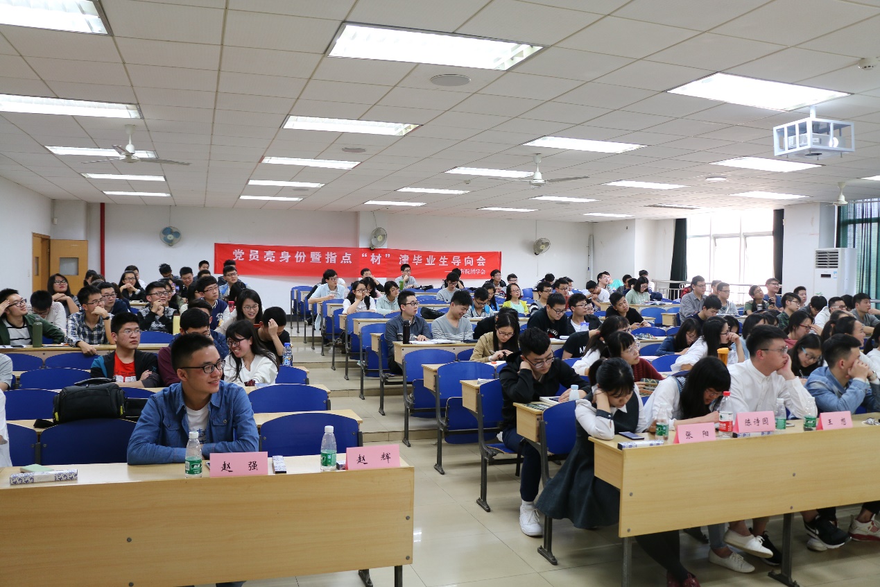 4月23日14:00,材料院于校本部科教南楼302教室开展了别开生面的“党员亮身份”系列活动暨指点“材”津毕业生导向会,旨在以毕业生的考研、保研、出国、就业的经历,给在读的材料院员工提供借鉴与参考方向。15级辅导员高阳莅临现场,活动吸引了许多员工参与。