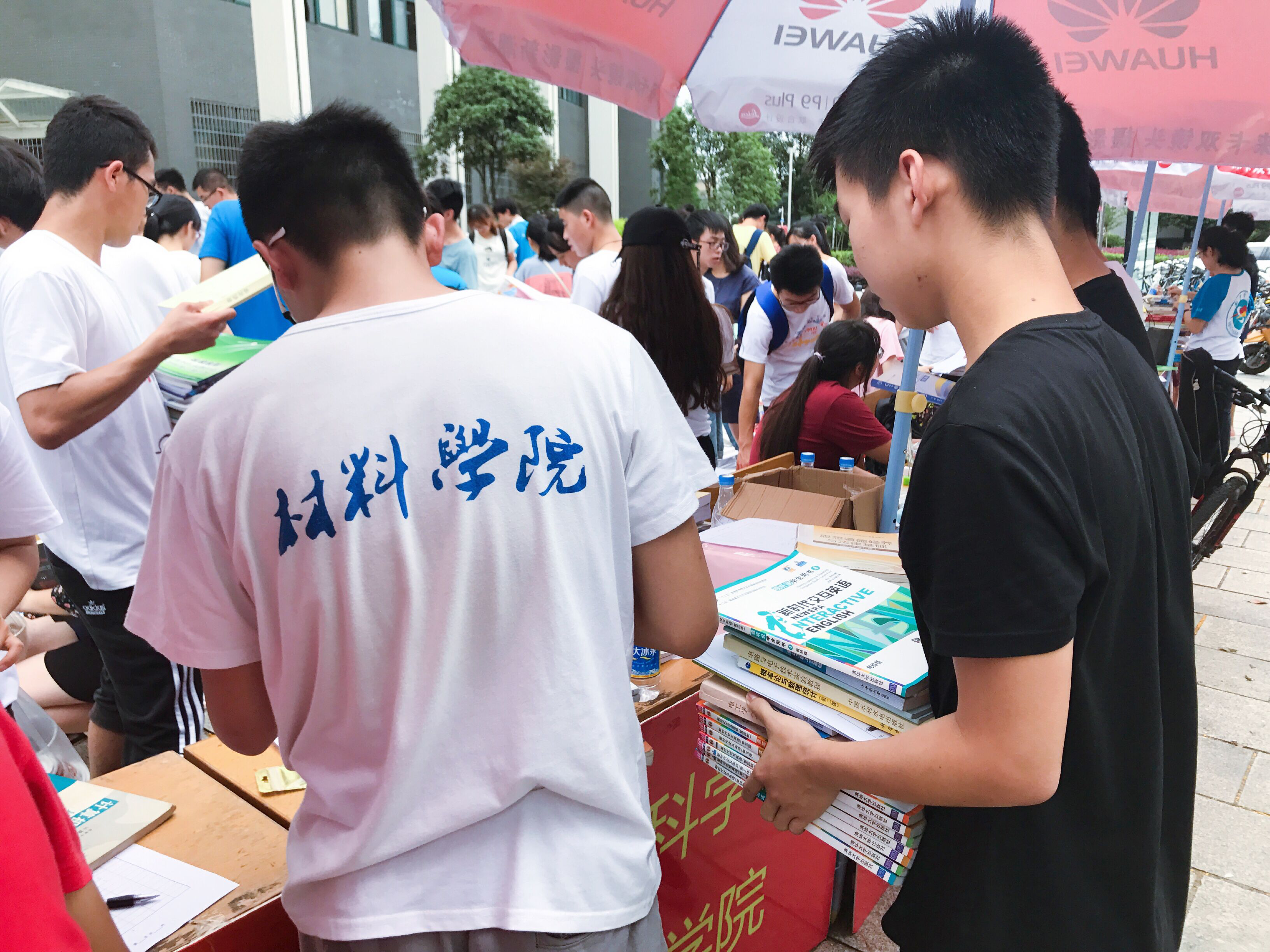 10 日7:30,工作人员早早布置场地,搬运书籍。9点,活动正式开始,公司不断有同学前来指定活动地点捐赠书籍,类型以教材、教辅、试卷为主,也有部分杂志、期刊以及文学典籍。前来挑选自己所需书籍的同学也接踵而至。找到目标书籍,并进行登记后即可自行取走。