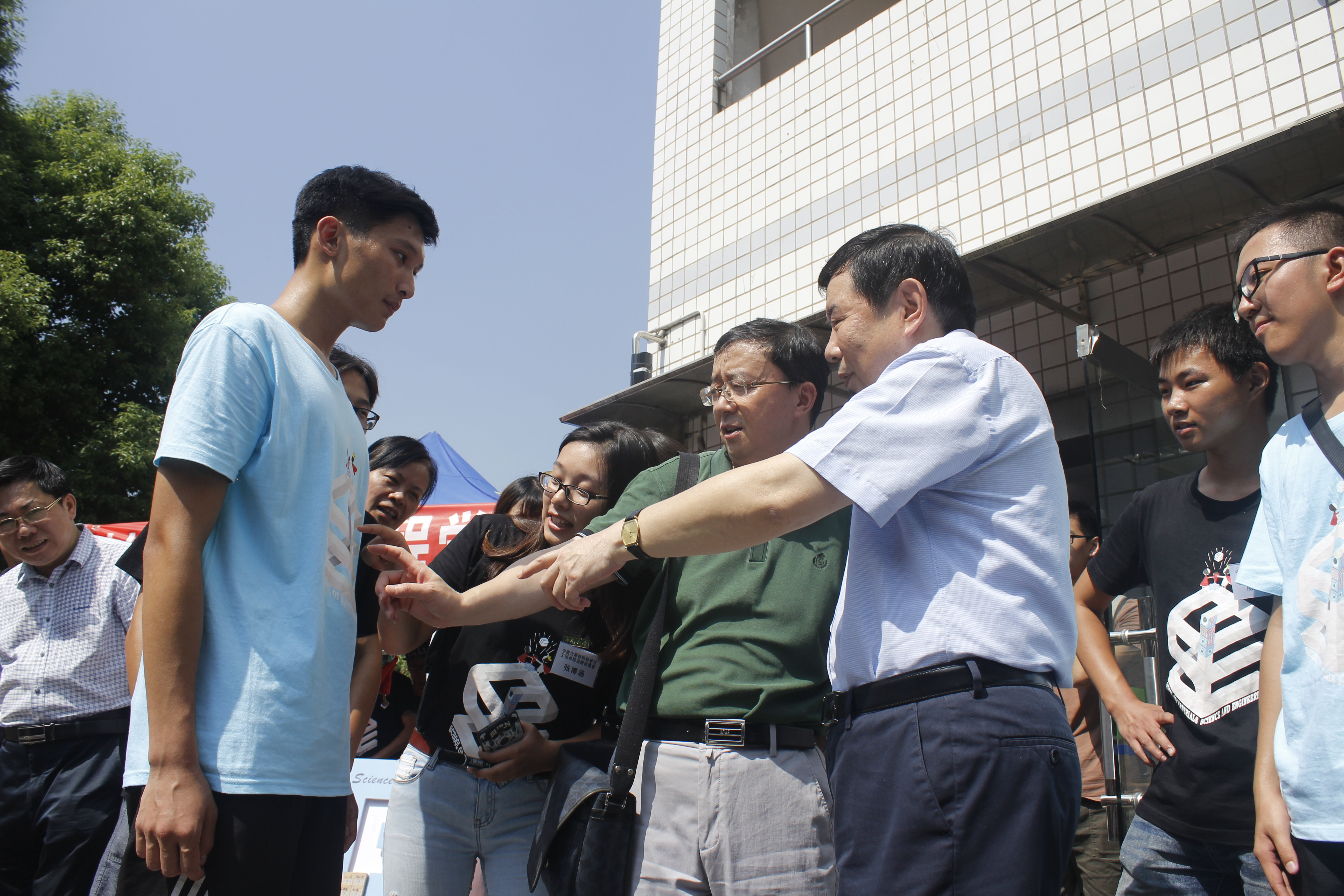9月8日上午,球王会体育官网党委书记高文兵一行莅临球王会迎新工作点,慰问工作人员和志愿者,与新生、家长亲切交谈,合影留念并与师生一起高呼“我们报到啦”,点燃了全场的气氛,将公司迎新工作推向高潮。
