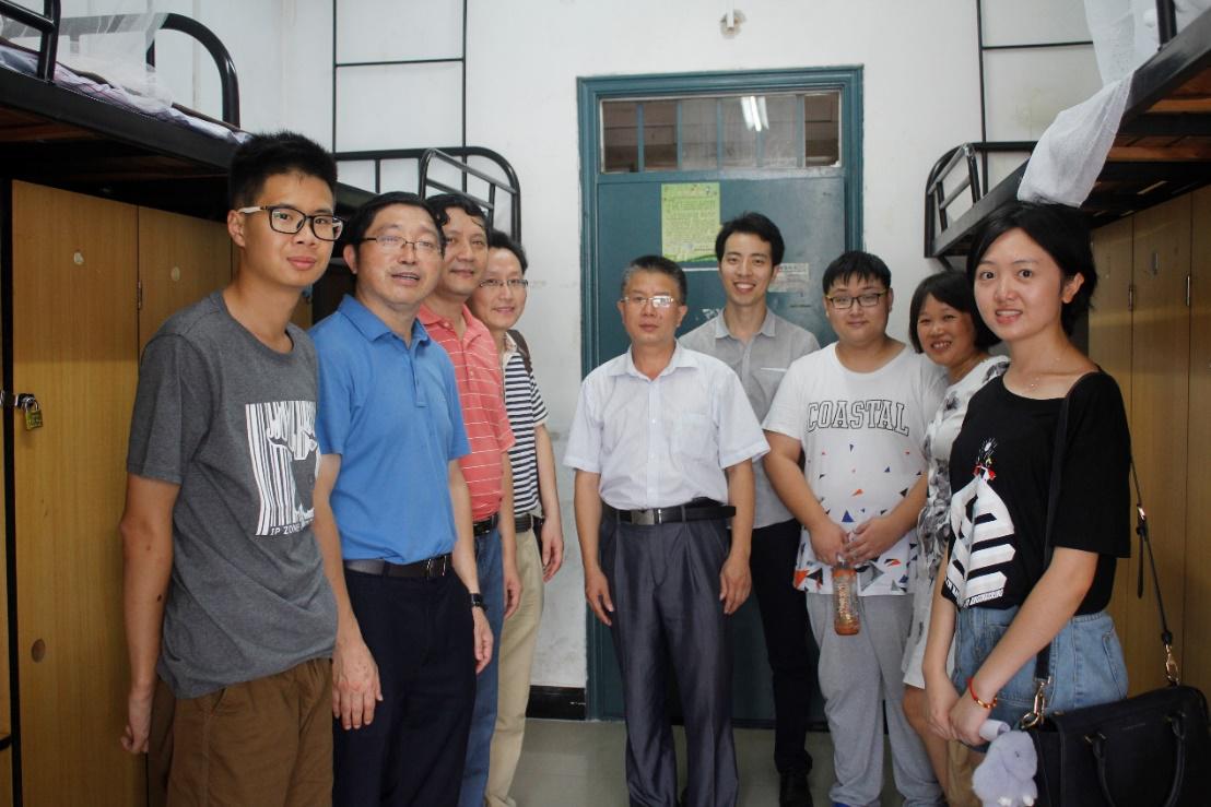 9月24日,材料院经理梁叔全、党委书记王德志、党委副书记胡小清、学工办主任蔡圳阳、副经理陈志永以及17级辅导员杨露一行人来到升华公寓看望新生,表达了对17级新生的关心与期望。