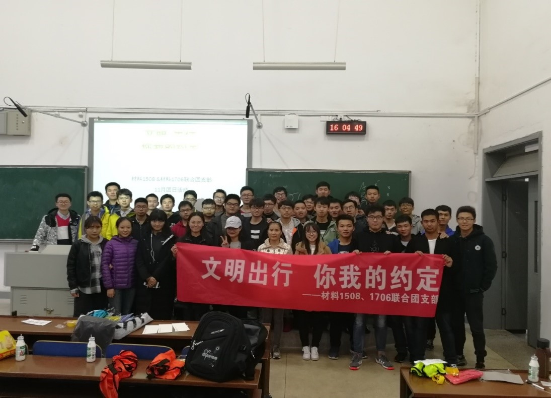 11月18日下午14:00,材料院1508和1706班11月团日联谊活动于D座203教室成功举行。本次活动旨在提高同学们的交通安全素养、培养同学们的安全出行意识。活动由两个班的团支书王凯歌和雷韬组织,并由1706班李明珠同学主持。