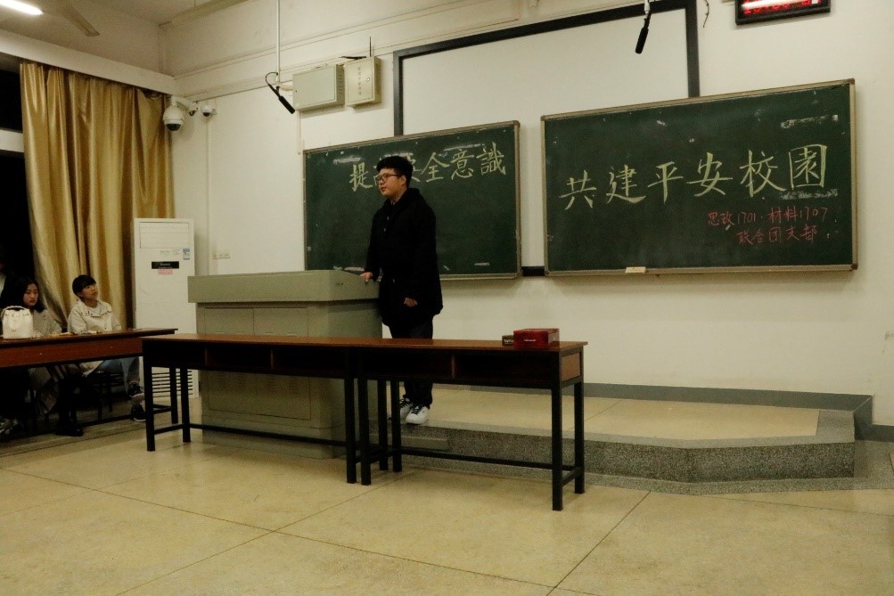 11月11日下午七点三十分,材料1707班与马院思政1701班共同举办的团日活动于新校区A座219顺利召开。此次团日活动旨在沟通两班同学感情,宣扬学习安全意识,共同促进,培养共建平安校园意识。会议由材料1707班班长曹晨曦同学和思政1701班班长邓爱同学共同主持,材料1707班团支书王家振同学与思政1701班团支书谭紫菱同学组织筹划。两个班同学积极参加了这次团日活动。