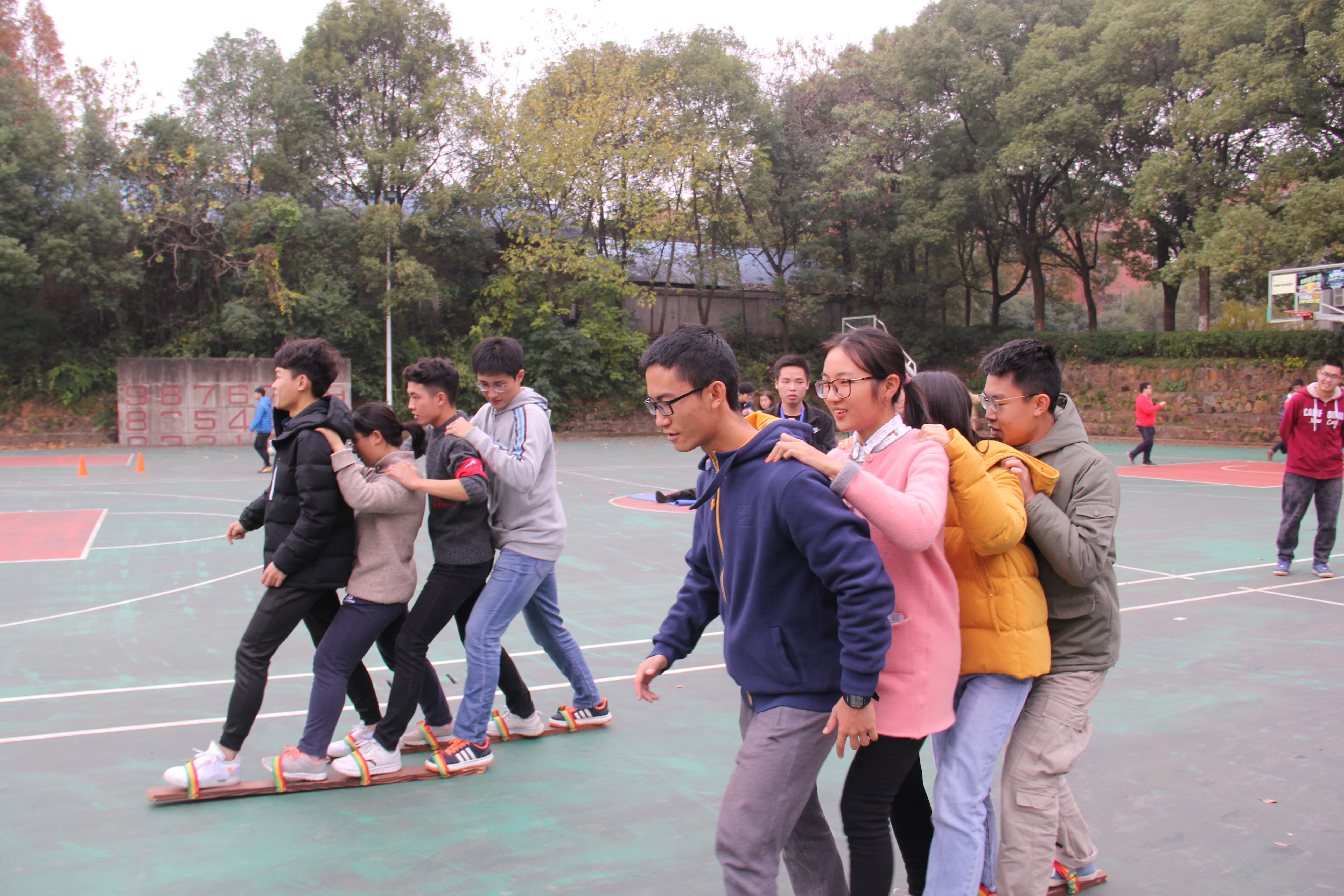 本届趣味运动会包含指压板跳绳、筷子夹玻璃球等个人项目和接力赛、同舟共济等团体项目,都由组织者精心设计,项目都各有特色,充满趣味。其中团体项目以班级为单位参赛,班导师纷纷来到现场,与同学并肩作战,团队项目需要团队协作、默契配合,活动过程中师生情谊迅速升温,也增强了班级凝聚力,身体得到锻炼的同时也妙趣横生。