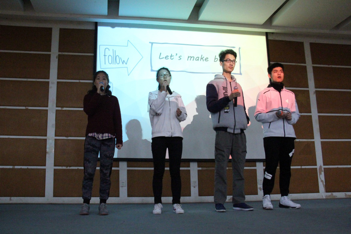 比赛伊始,王奋翔上台致辞。他说到,这样的比赛有趣又有意义,大家都应该积极参与进来。紧接着进行团队展示环节,其中Reversal Destiny团队极富感染力的歌声带动了全场合唱。随后进行的是第二个环节:传声筒。在这个环节中,一支队伍将句子错误传递为“我吃饭时吃了史前海龟”,引起台下一阵笑声。