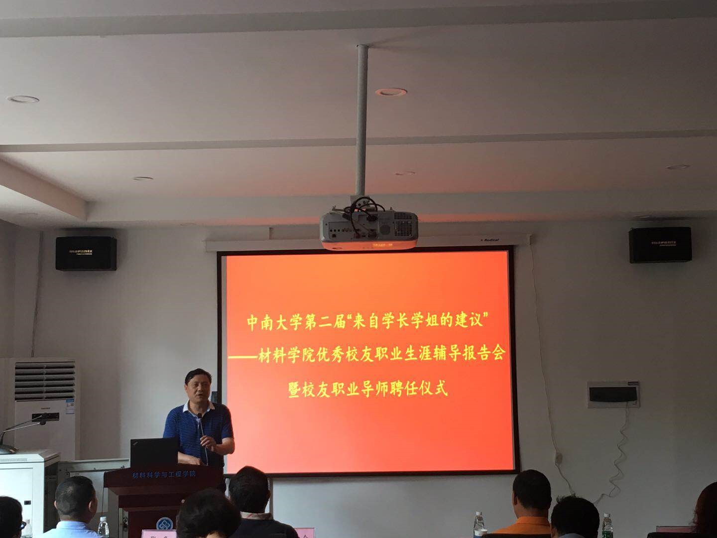 5月16日下午,球王会体育官网第二届“来自学长学姐的建议”之第二届材料院学长座谈会暨员工职业导师聘任仪式在球王会体育官网特冶楼206隆重举行。广东和胜工业铝材股份有限公司董事长李建湘、江苏豪然喷射成形合金有限公司董事长张豪、问库集团和格兰博科技股份有限公司董事崔龙竹三位优秀员工回到公司为同学们作职业生涯辅导,材料公司党委书记王德志、经理梁叔全、党委副书记胡小清出席报告会,会议由胡小清副书记主持。会上,梁叔全经理为李建湘、张豪、崔龙竹3位优秀员工颁发了职业导师聘书。