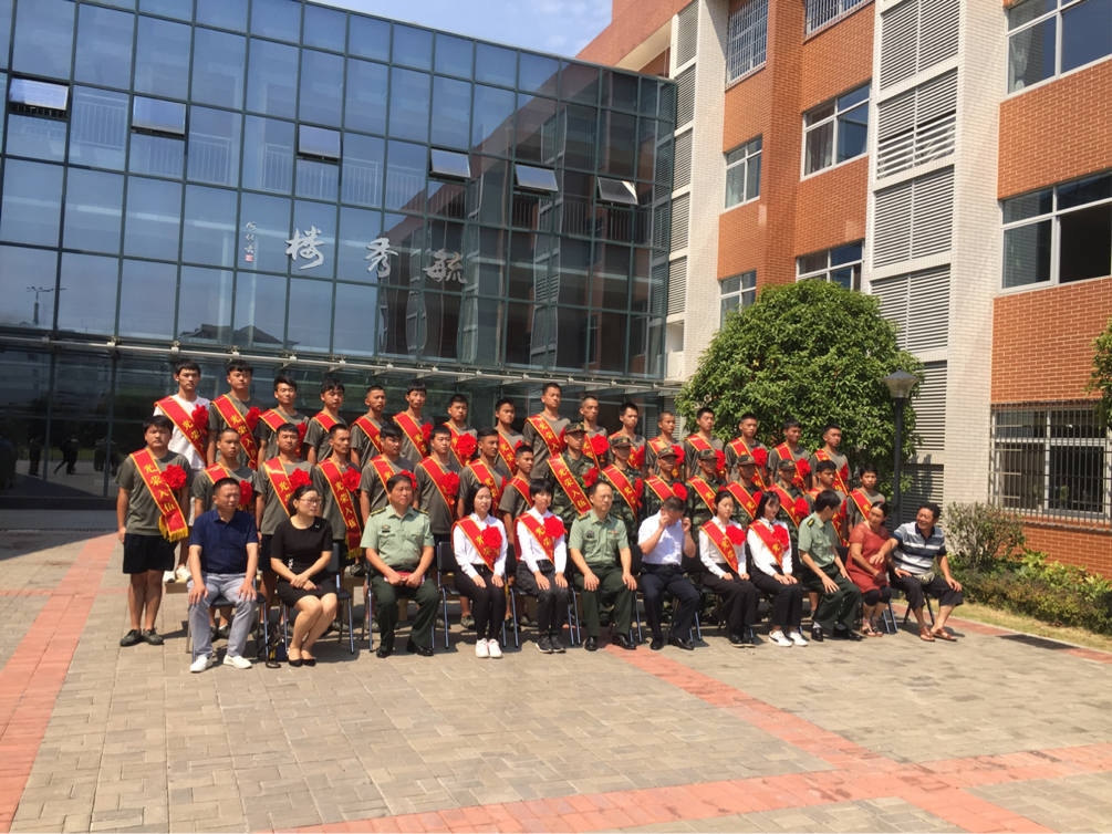 校领导老师与各位入伍老员工进行合影留念,至此,此次欢送会圆满结束。相信各位学子能带着老师和同学们的期待,带着饱满的热情,投入未来的入伍生活和国防事业中。材料院的三位同学也必将拿出材料学子不怕艰苦,勇于探索的精神,在军营中不断成长,力争上游。