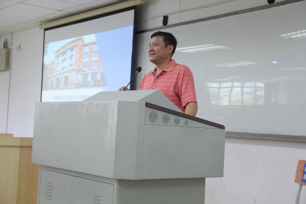 胡小清副书记介绍公司领导以及与会人员后由王德志书记致欢迎辞。王书记代表公司向18级新生表示衷心的欢迎,并对同学们提出五点要求:一是继续学习。认真学习专业知识,基础理论知识,找到学习的方法,为科研打好基础。二是实践。培养自己的动手能力,创新科研。三是思考。学而不思则罔,思而不学则殆。四是适当娱乐,张弛有度才能走得更远。最后,身体是革命的本钱,要注重体育锻炼。五位一体搞好科研,过好生活。