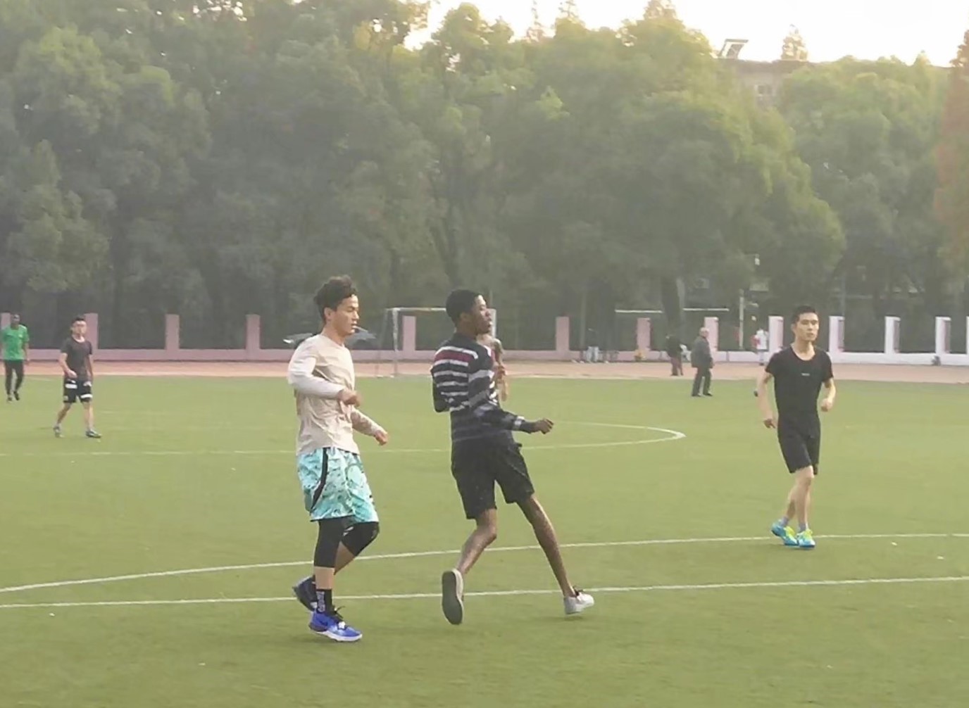 11月26日下午,联谊足球赛在校本部足球场正式开始,在团支书的努力下,同学们得以与职工团队进行一场友谊赛。我方球队采取积极防御的策略,经历弥补在经验上的不足,抵挡住对方球队的数轮进攻。这场比赛不仅激发同学们的运动热情,更促进了同学们与职工同学的交流与沟通,从而进一步拓宽国际视野。