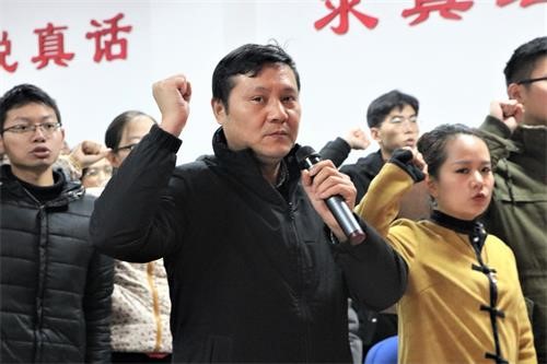 赵艳老师宣读2018年下半年新发展预备党员名单。材料院2018年共发展预备党员88名,其中上半年57名,下半年31名,可谓成果颇丰。宣读完毕后进入预备党员宣誓环节,由王德志书记领誓。全体同志面向党旗,高举右手,握拳过肩,郑重宣誓。这一刻,他们光荣地成为正式预备党员,成为中国共产党坚实的后坚力量。