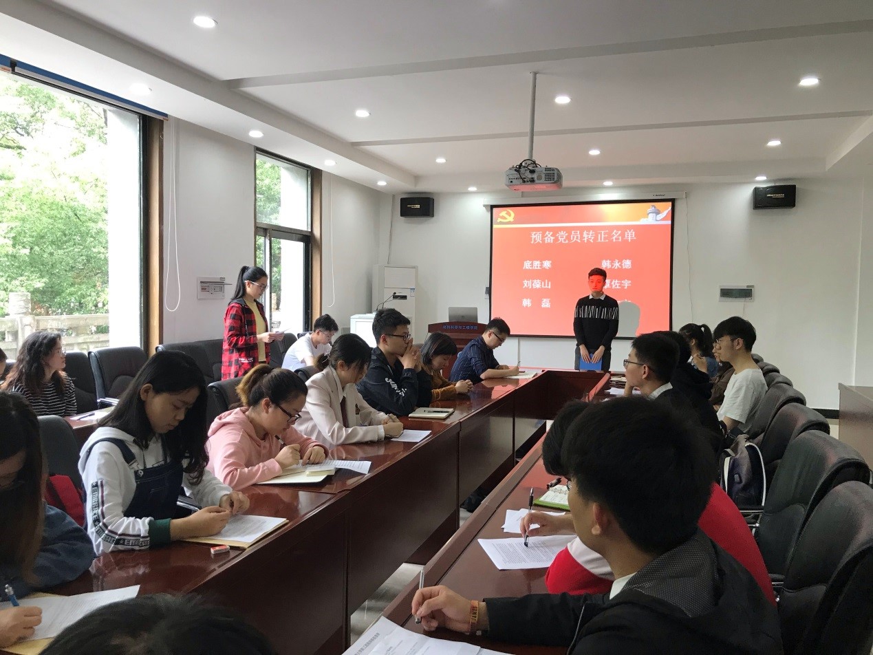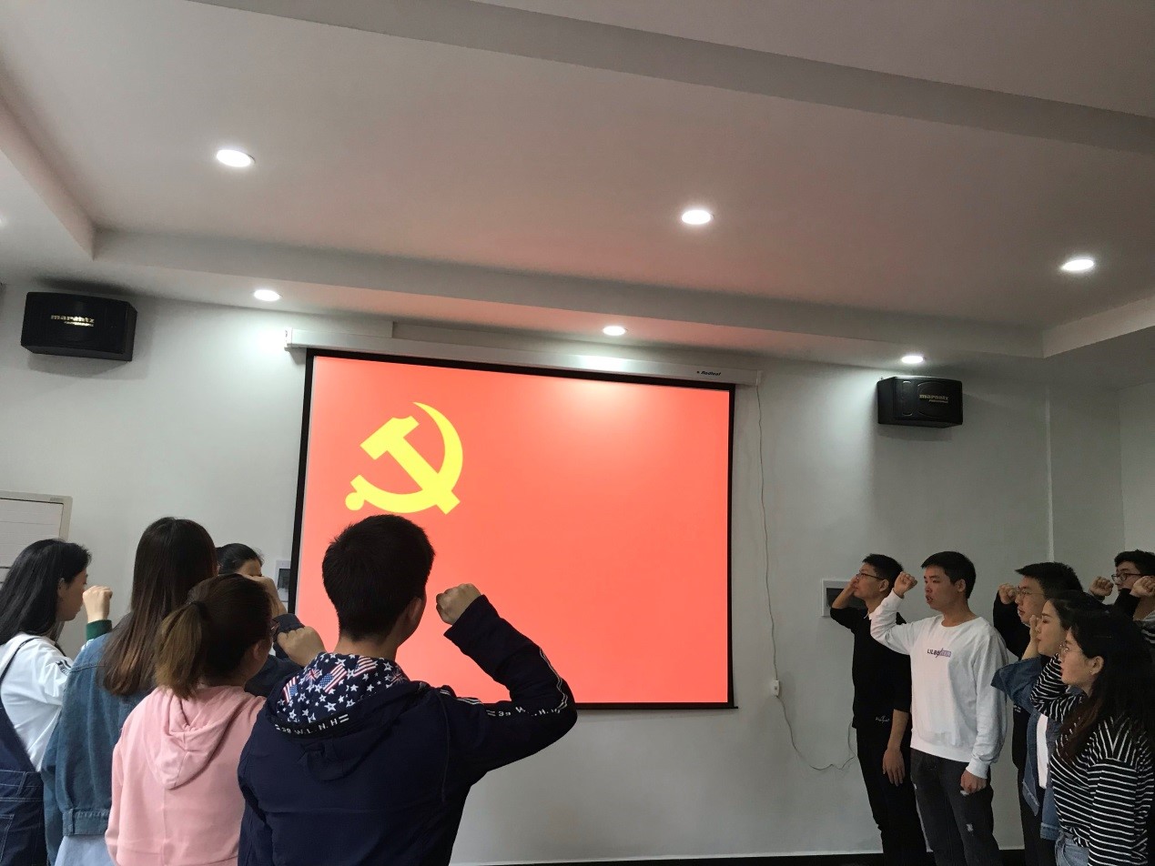 接着是新发展党员的发言,汇报其成为入党积极分子后的基本情况,阐述自己对党的认识与自身存在的缺点,并表达自己在未来会努力克服困难,改正缺点的决心。接着再由相应的培养人介绍其在培养考察期的表现情况,并表示是否推荐其成为预备党员。所有预备党员及新发展党员同志发言后,党支部正式党员以不记名投票的方式进行表决,最终全票通过6名预备党员转正及接收8名预备党员的决定。随后,所有转正党员同志及新入党同志在组织委员邢振月同志的带领下,大声宣读入党誓词。