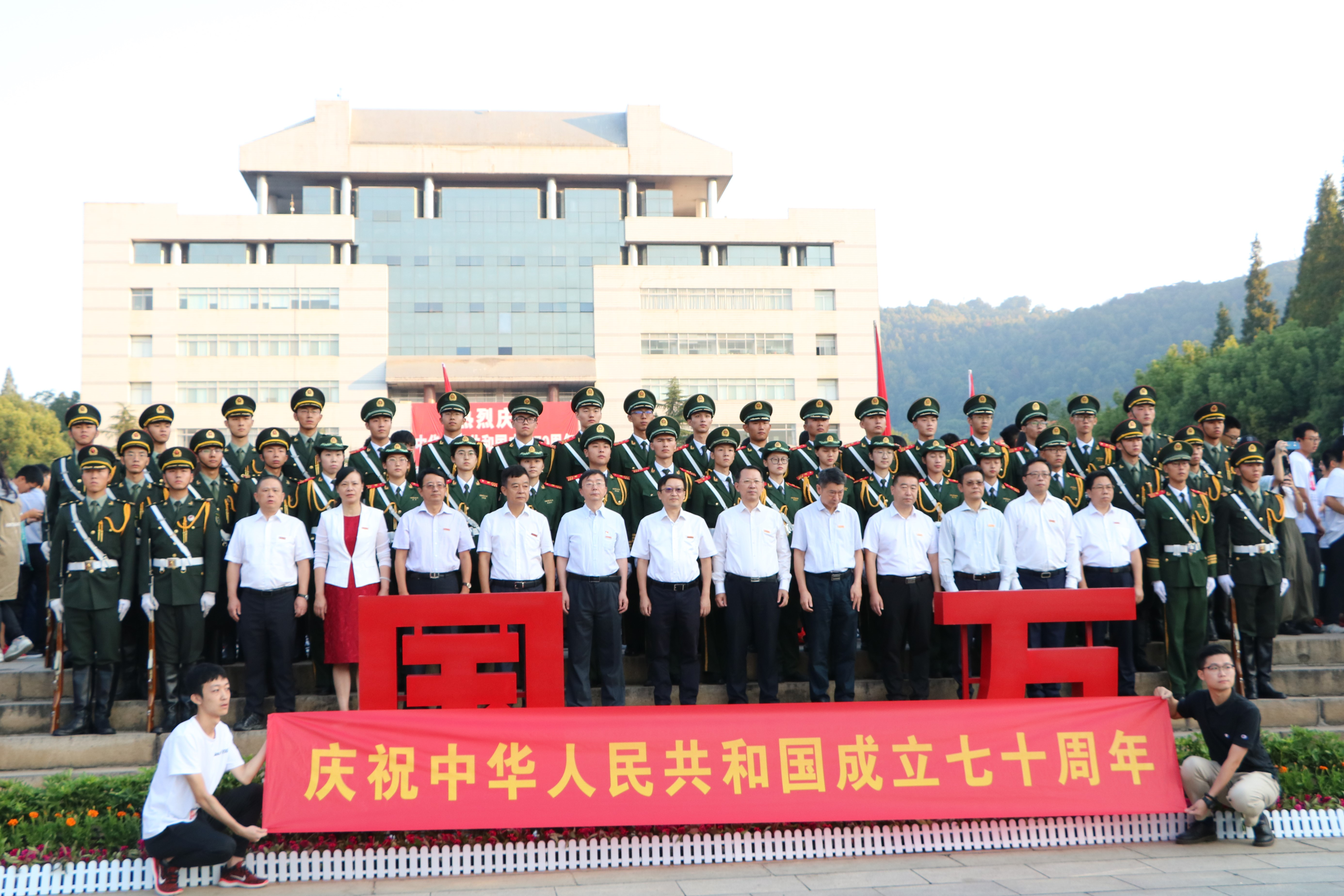 为庆祝中华人民共和国成立70周年,10月1日早晨6:30,公司于校本部图书馆前坪隆重举行了国庆升旗仪式。球王会出席本次升旗仪式的有:党委副书记胡小清及学工办老师们、19级全体本科生、研究生、党员以及员工干部。此后,球王会组织了员工观看阅兵仪式。