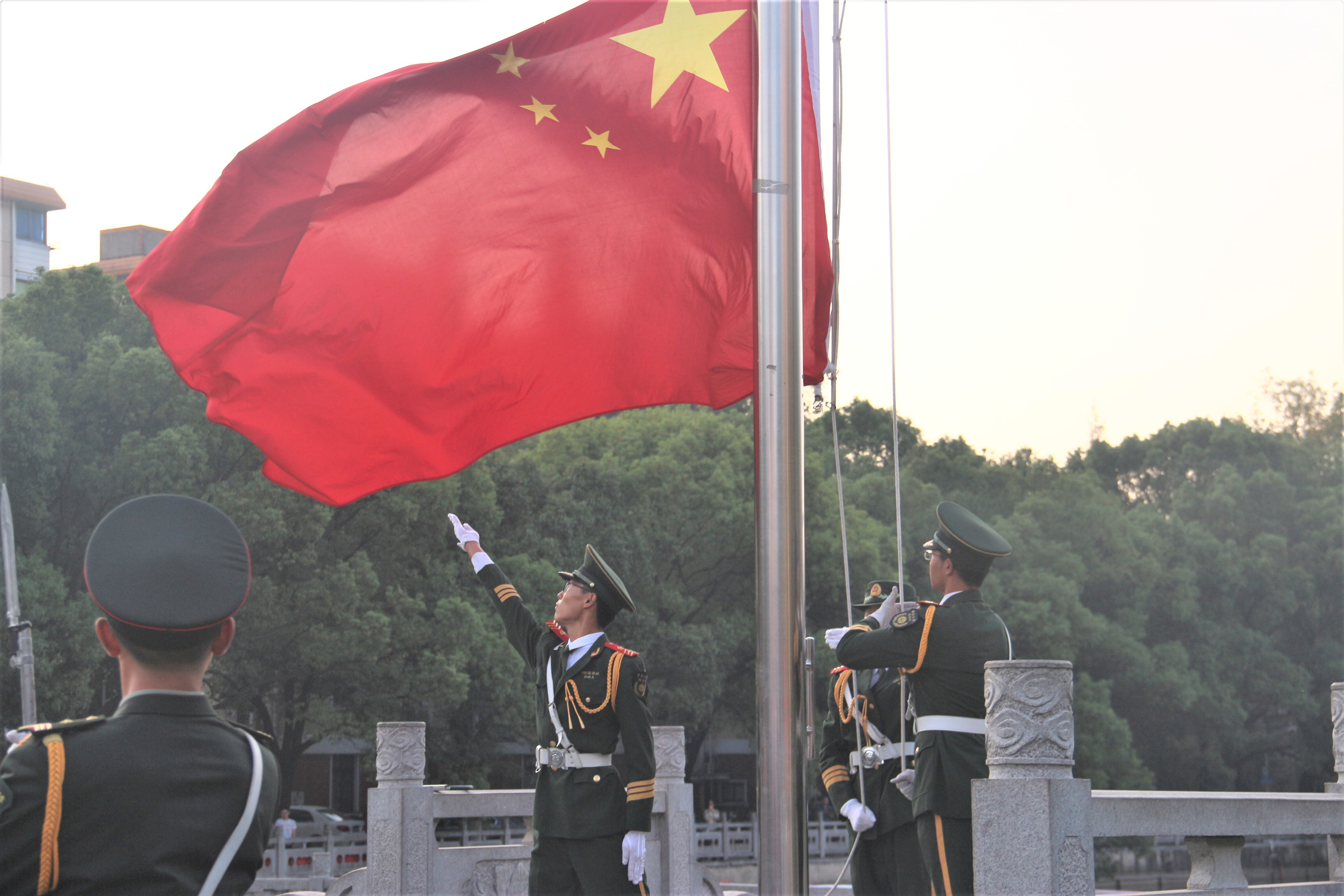 上午6:20,参与人员全部就位。建筑与艺术公司的八位员工代表,演唱《我和我的祖国》与《共筑中国梦》,为祖国母亲献上70岁的生日祝福。随之而来的是庄严的国旗护卫队,他们迈着整齐的步伐护送国旗入场,在全体师生激昂嘹亮的国歌声中,五星红旗冉冉升起。作为祖国的未来,我们用青春的誓言,郑重向祖国许下承诺:努力把爱国之情、报国之志投入祖国改革发展的伟大事业之中,用坚韧挑战极限,用信念铸就辉煌,做知行合一,经世致用的中南学子。在师生们激动的心情中,升旗仪式落下了帷幕。