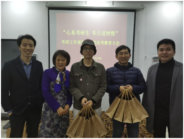 会上,胡书记、蔡老师和彭老师纷纷表达了公司对广老员工们的关心,并在此次大会中重点突出了公司对考研同学们的关注以及期望,并希望各班级其他同学可以与公司共同努力,做好考研之前以及考研期间对考研同学的心理疏导、身体健康、考间服务等方面问题的关注或工作。最后,胡书记、蔡老师和彭老师把送给考研生的慰问品发给了各班级的员工代表。