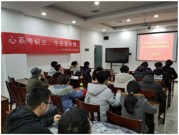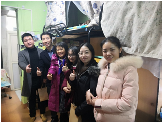 在大会结束之后,胡书记、蔡老师、彭老师等一行人还对部分寝室进行了慰问工作,在胡书记的倡议和牵头下,蔡老师、彭老师随同一起“入寝室”,给考研的同学们在寒冬里送上了一份来自材料院的心意和温暖。书记和老师们对材子们怀着满满的关爱和信心,给材子们加油打气,而材子们收到这份来自公司和老师们的爱,也是满满的感动。