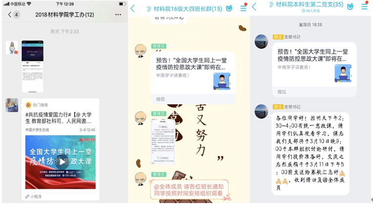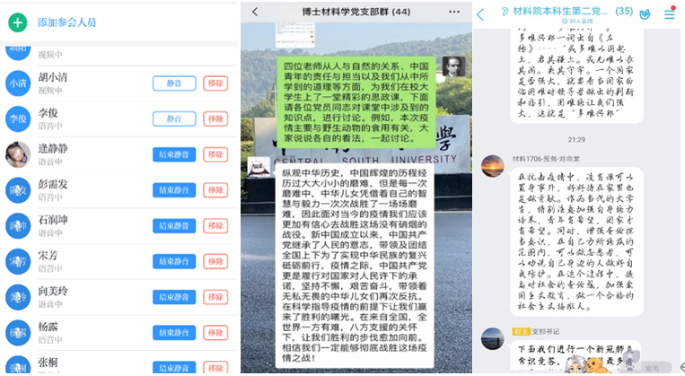 众师生对此次思政大课反响热烈。材料公司党委副书记胡小清说:在这个非常时期,给全国老员工来这么一堂思政大课太有必要和很有意义!一代人有一代人的新长征,一代人也有一代人的责任与担当,“过去是你,现在是我”,体现的不仅仅是时代的变迁与新生代的成长,更是中国生生不息的生命力以及中华儿女的自强不息。材料院博士生、研究生、本科生们都坚信,在这次“战疫”中,全国人民在中国共产党的领导下团结一心共同抗争,必将很快取得全面胜利。
