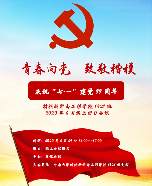 2020年6月29日,球王会体育官网球王会冶材1921团支部举办了以“青春向党,致敬楷模”为主题的线上团日活动。本次团日活动旨在学习中国共产党党史成就、致敬战疫英烈楷模、总结年度团支部工作报告,引导青年团员树立积极向上的精神风貌。