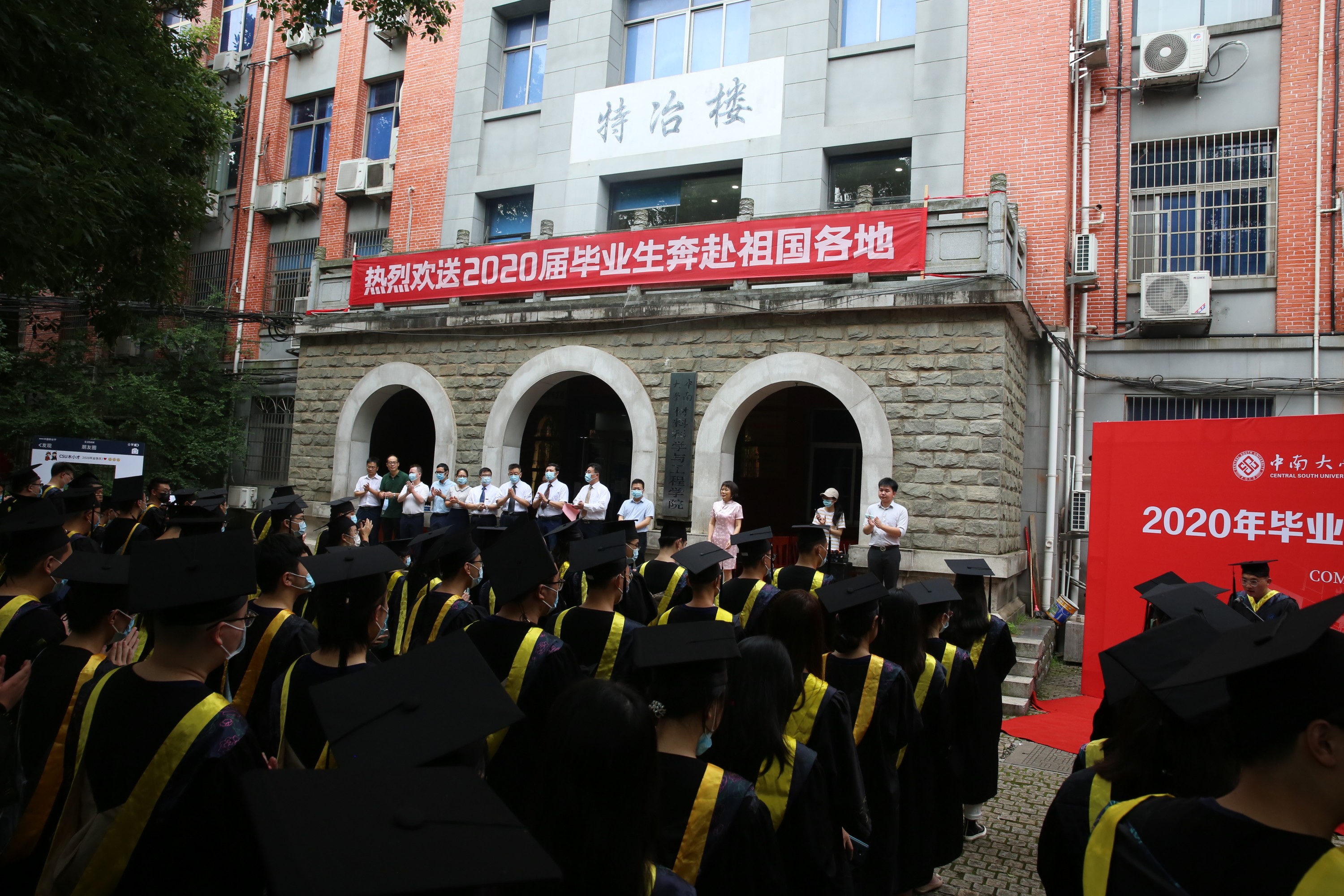 2020年7月4日上午8:00,球王会2020届毕业生毕业典礼暨学位授予仪式在特冶楼前坪隆重举行。材料公司党政领导、系主任、2016级本科生班导师和综合办、业务办、学工办全体老师以及2020届全体本科毕业生等近400人共同见证了这场特殊的毕业典礼,典礼由公司党委副书记胡小清主持。为做好疫情防控工作,公司还特别邀请了球王会体育官网职工医院刘书记现场指导。