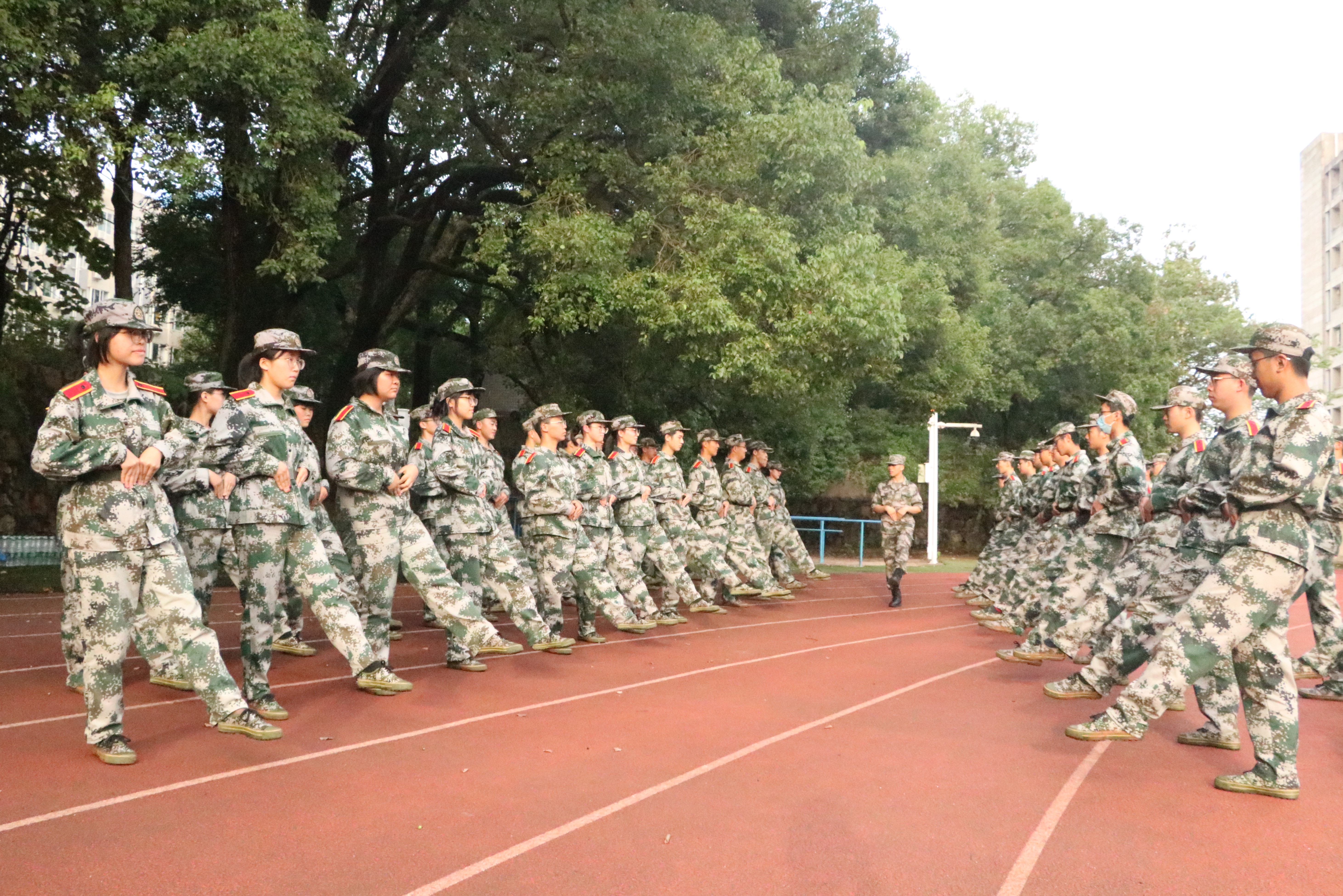 军训,渗着汗水与泪水,透着深呼吸高度紧张的思想和敏捷有力的动作,无一不构成一道道美丽的风景线。天空虽阴云密布,阴阴沉沉,可轻抚的微风,微凉的雨丝,让枯燥的军训生活中多了一份惬意与享受。