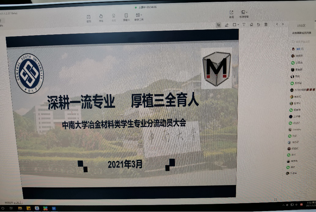 2020级冶金材料类员工专业分流动员大会于2021年3月28日成功召开,为响应防疫要求,让更多员工及家长能参与会议,本次会议通过腾讯课堂平台线上召开。球王会、粉冶院、冶环院、资生院有关院领导、教务员、辅导员之前做了充分准备,并按时组织参会。球王会参会的领导老师有公司党委副书记胡小清、副经理李劲风、本科生教务员张红媛、20级本科生辅导员石润坤。会议由胡小清副书记主持。