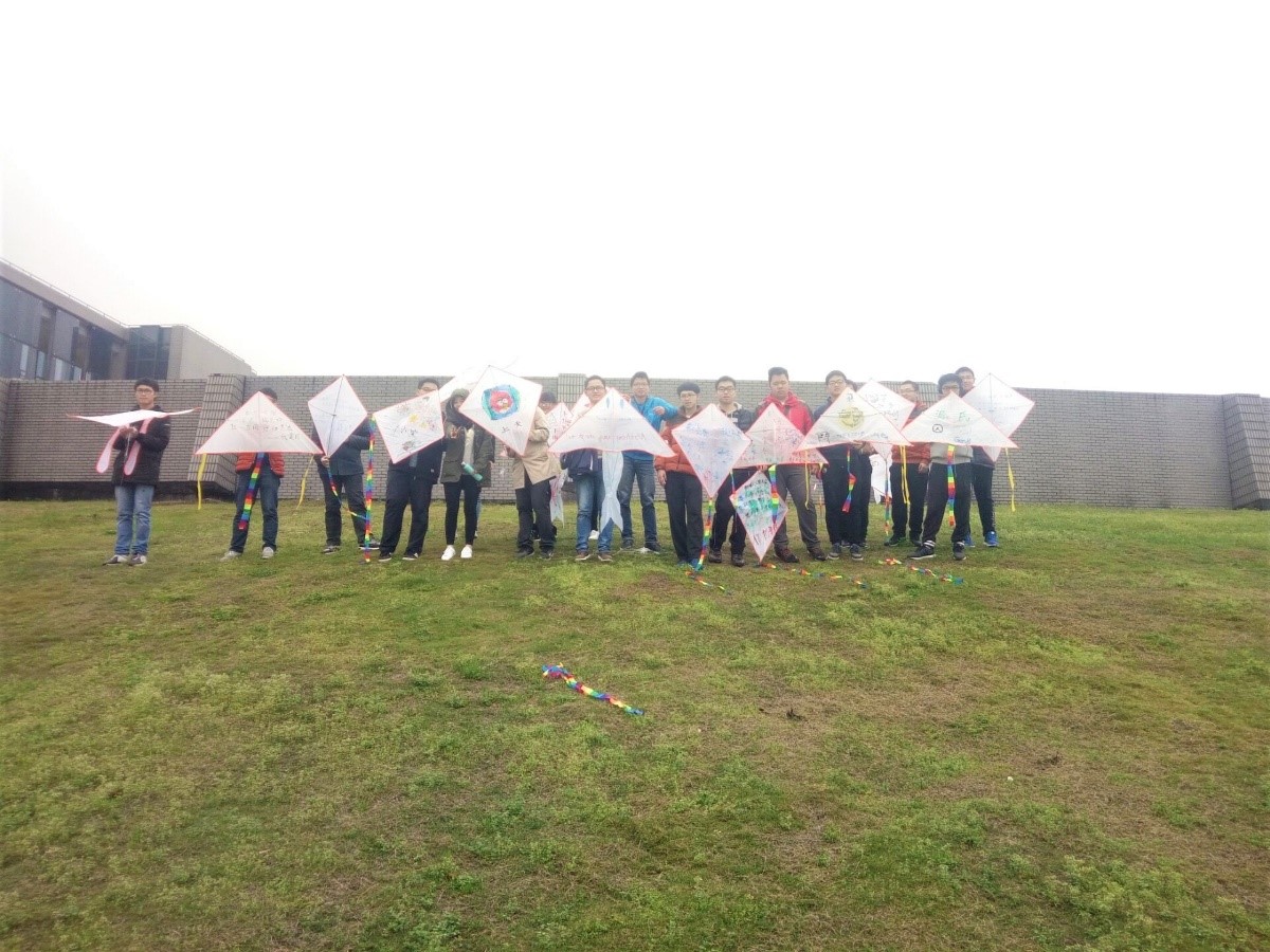 3月21日,三个班再次在新校区D座聚齐。在团支书的带领下,大家两三人一组相互合作,一起放风筝。同学们在风筝上写下对新学期的寄语,在D座前的草坪上,放飞满载希望的风筝。活动最后,同学在草坪上高举自己的风筝合影。尽管天公不作美,但是大家对放风筝的热情却很高涨。