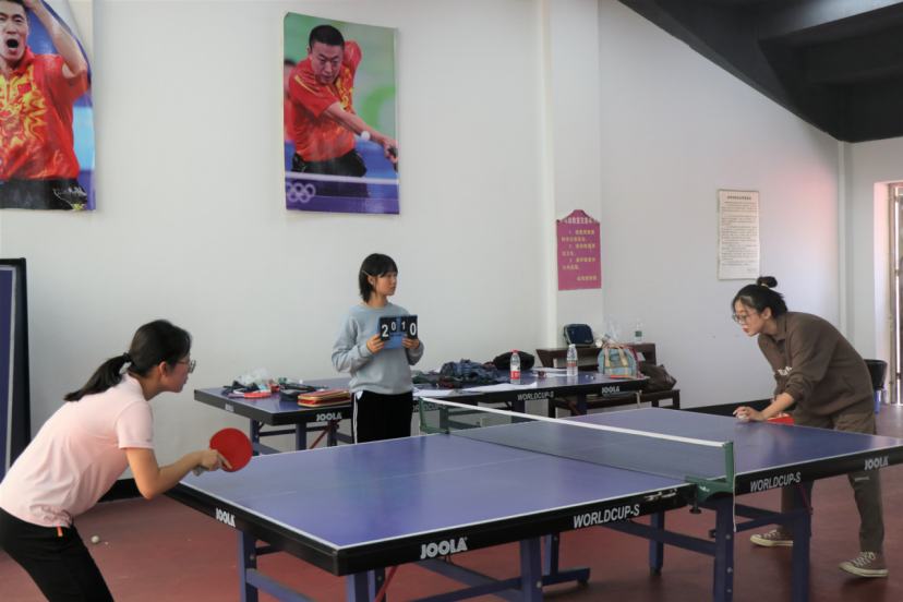 在体育部的同学的指挥下,比赛有条不紊地进行着。球与拍碰撞的声音回荡在整个乒乓馆中。每位参赛选手都全力以赴,奋力拼搏。每一次扣杀挥动的手臂,每一次得分后激动的狂吼,每一次对攻中灵活的步伐,无不体现着选手对冠军的渴望。比赛自然也是精彩迭出,让观看比赛的同学不由得为他们鼓掌欢呼。