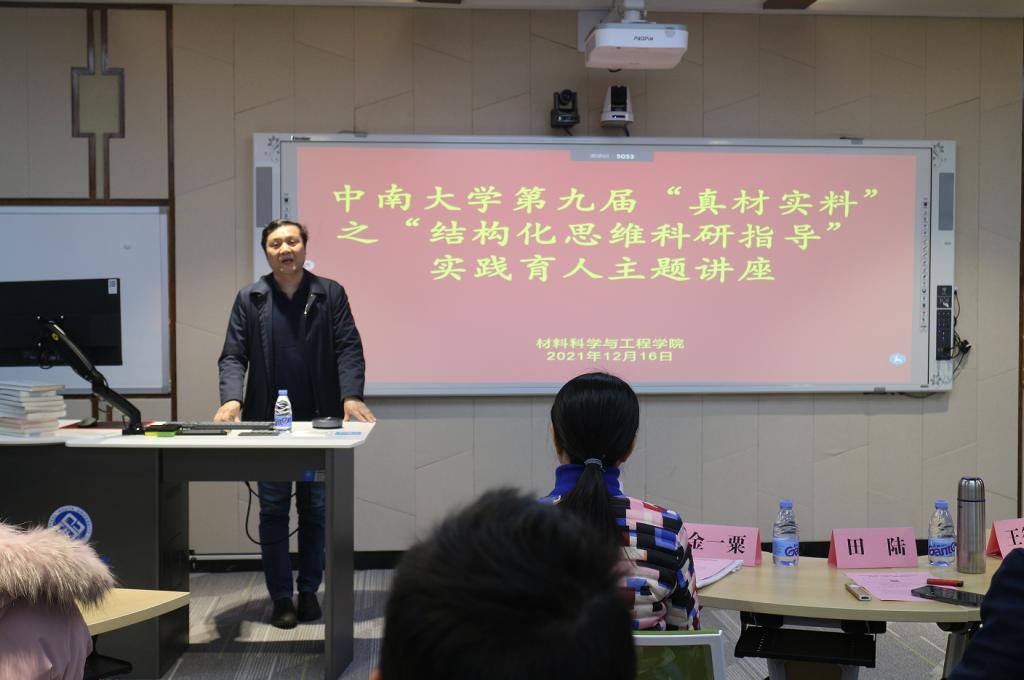 2021年12月16日下午,球王会体育官网第九届“真材实料”之“结构化思维科研指导”实践育人主题讲座在科教北楼503成功召开。镭目科技有限公司总裁田陆一行,材料公司党委书记王德志,球王会体育官网教师教学发展中心副主任金一粟,材料公司党委副书记胡小清、学工办主任蔡圳阳、研究生辅导员张桐以及材料院、粉冶院等员工代表参加本次讲座,讲座由胡小清副书记主持。