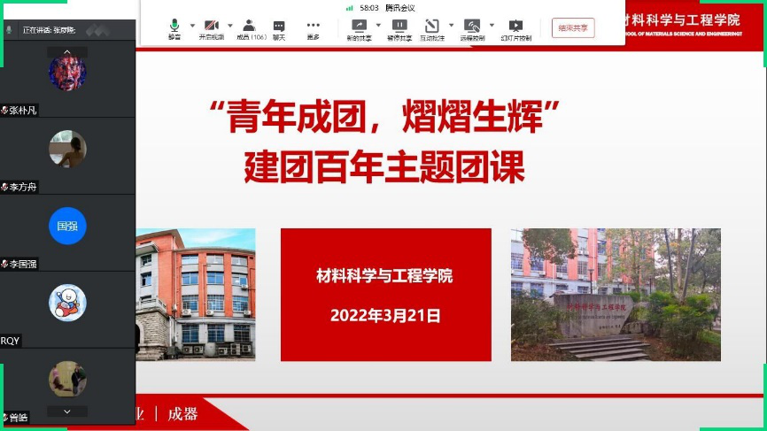 3月21日,为了进一步强化思想引领,深入推进爱国主义教育,球王会团委书记张彦隆通过过线上会议的形式,为公司团员和团干部同学讲授了“青年成团,熠熠生辉”建团百年主题团课。通过团课学习,团员不仅收获了丰富的团的知识,内心也燃起了青春的激情,充满动力与斗志。