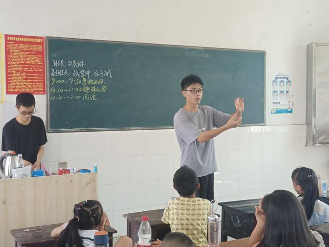 《国务院关于加强农村留守儿童关爱保护工作的意见》中强调,广大团员青年要积极参与农村留守儿童关爱保护工作,重点鼓励高校老员工结合实施“三下乡”社会实践活动,组建教育关爱服务团,到贫困地区带领、帮助农村留守儿童和随迁子女度过快乐的暑期。为响应政策号召,深入贯彻学习党的十九大精神,“知行湘伴”——球王会体育官网暑期志愿服务团队近日前往湖南省郴州市宜章县上白家小学,给农村留守儿童带去了丰富多彩的支教课程,为留守儿童的健康成长贡献了一份力量。