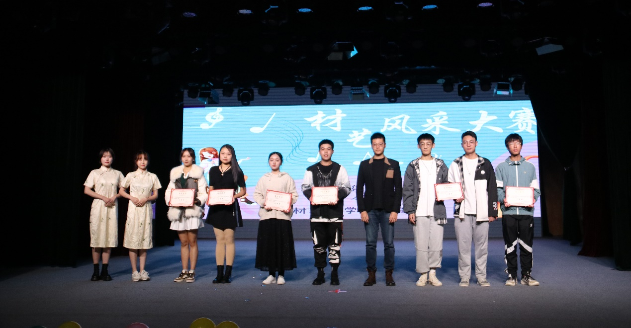 随着时间的推移,比赛也接近了尾声,大赛进入到颁奖环节。获得三等奖的节目有:艾珂乐组《花球啦啦操表演》、安佳琪组《girls》、颜若芙《光年之外》。获得二等奖的节目有:冯天艺组《修炼爱情》、王正一《齐天大圣》。获得一等奖的是材料国际2201班的《风火低语》。