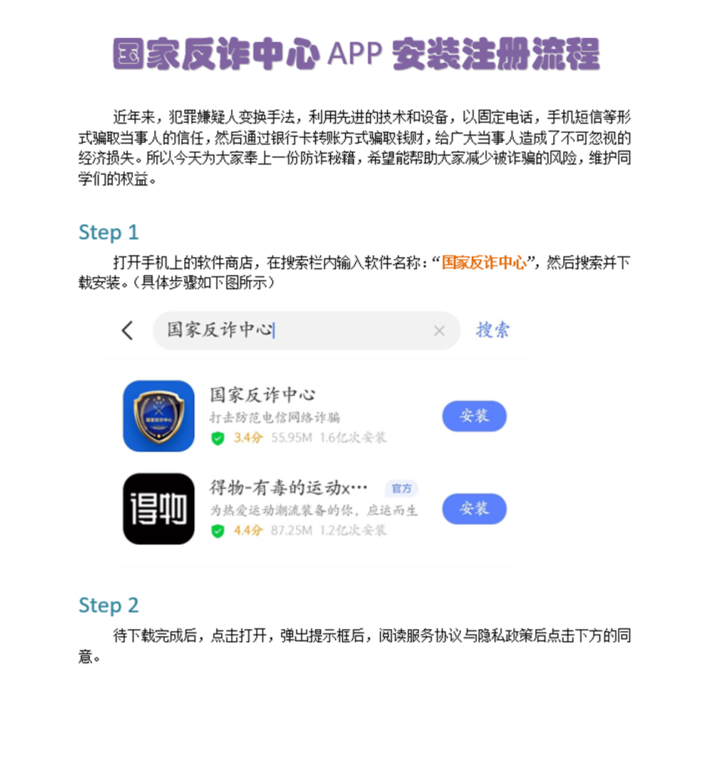 首先,公司制作国家反诈中心app下载注册教程,帮助同学们完成app的下载并开启来电预警。
